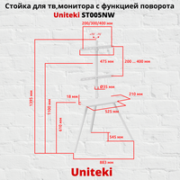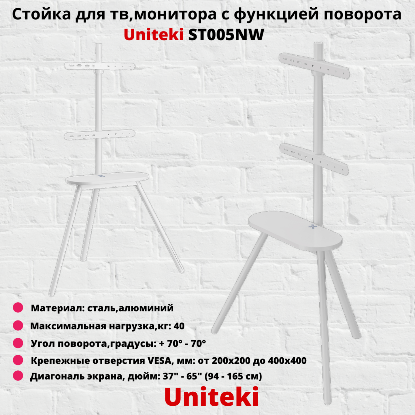 Стойка-подставка UNITEKI ST005NW предназначена для ТВ диагональю экрана от 32 до 65 дюймов (81 – 165.1 см).