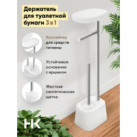 - Аксессуар для ванной 3 в 1: держатель для бумаги, ершик и полочка для телефона