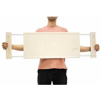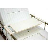 Надкроватный столик из пластика, устанавливаемый на боковые ограждения шириной он 80 до 105 см Столик оснащён регулируемыми раздвижными кронштейнами, с помощью которых фиксируется между боковыми ограждениями госпитальных, или домашних кроватей лежачего больного с различной шириной ложемента. Расстояние между боковыми ограждениями от 80 до 105 см. сделан из пластика с декоративной ПВХ плёнкой по центру столешницы и оснащён для прочности стальными кронштейнами и рамой. Использованные материалы и особенности открытой конструкции столика позволяют его мыть под струёй воды. Регулировка ширины от 80 до 105 см !