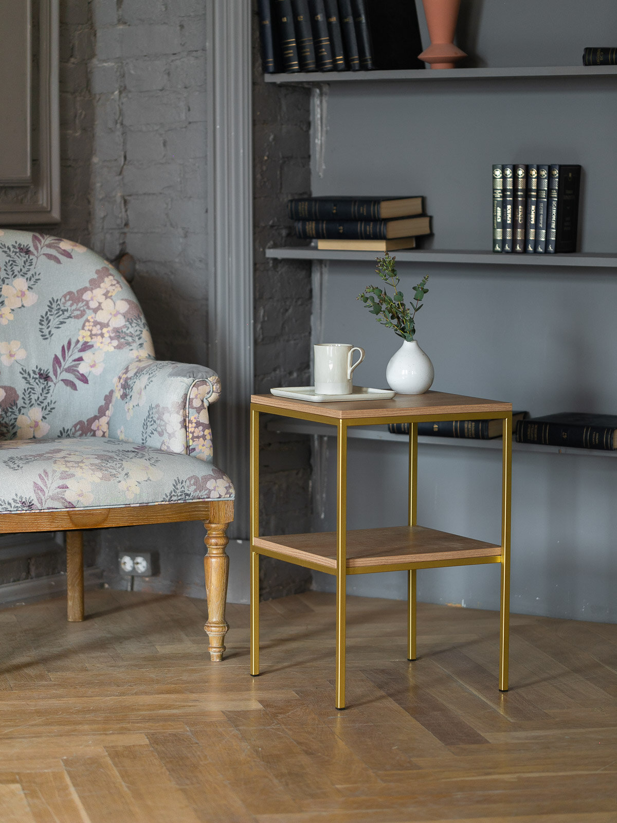 Cтолик журнальный золотой, натуральный дуб, 400*400*600, NORMAN
