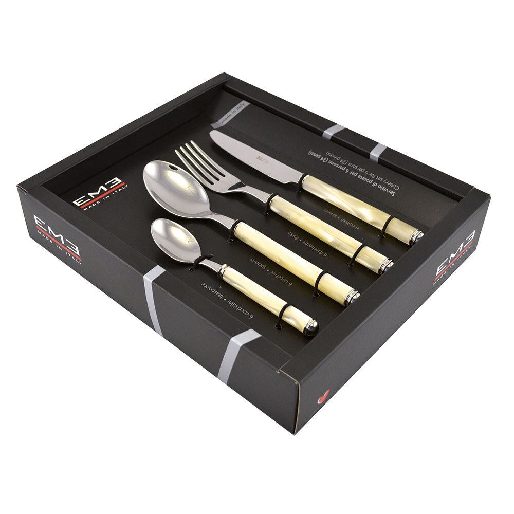 Cтоловые приборы на 6 персон EME Ginevra, сталь 18/10, цвет белый перламутр: сравнение цен, характеристики, фото, актуальное наличие и цены.