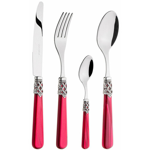 Купить Cтоловые приборы на 6 персон EME Ginevra, сталь 18/10, цвет бордовый перламутр с доставкой по всей России.
