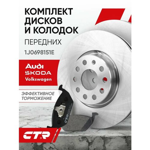 CTR Комплект тормозных дисков передних с колодками Skoda Octavia , Yeti / Volkswagen Golf , Caddy , Beetle ; 1J0698151E ; 1k0615301ak