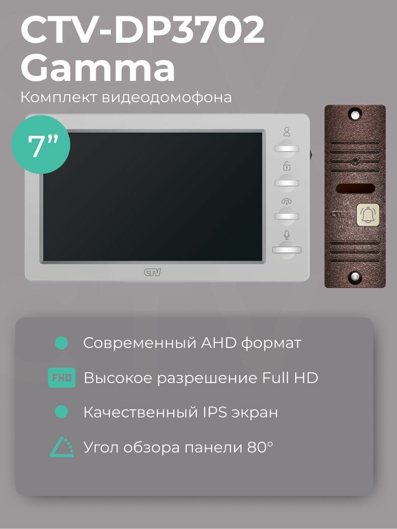 Комплект видеодомофона для квартиры и частного дома CTV-DP3702 Gamma, 7 дюймов, дымчатый-бронза: сравнение цен, характеристики, фото, актуальное наличие и цены.