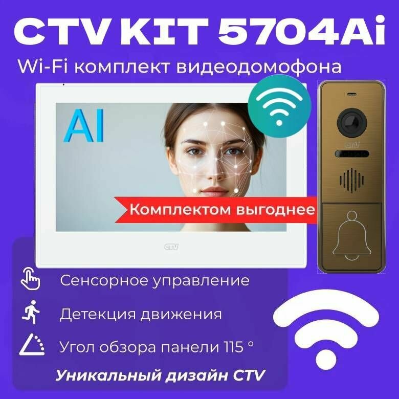 Купить Видеодомофон для квартиры и частного дома CTV KIT 5704Ai с Wi-Fi и записью, белый-бронза с доставкой по всей России. Видеодомофон для квартиры и частного дома CTV KIT 5704Ai с Wi-Fi и записью, белый-бронза: сравнение цен, характеристики, фото, актуальное наличие и цены.