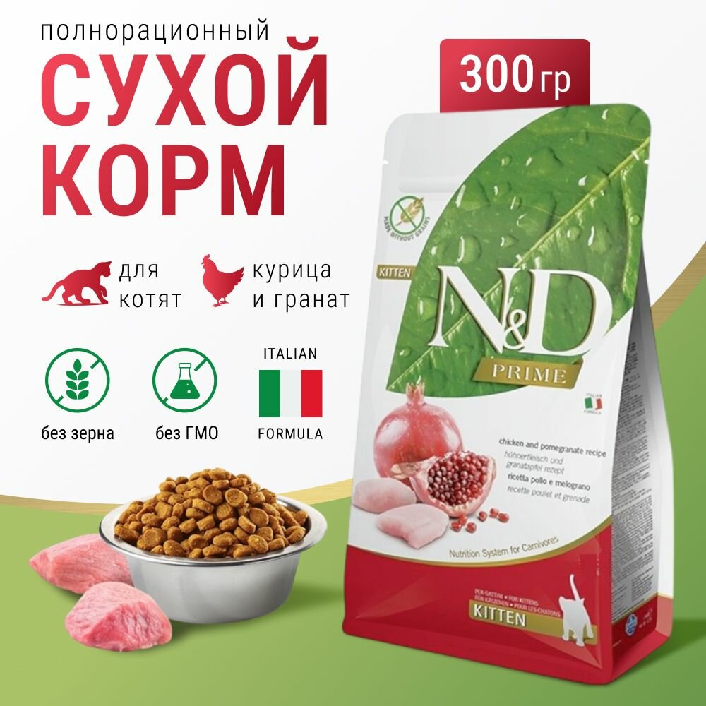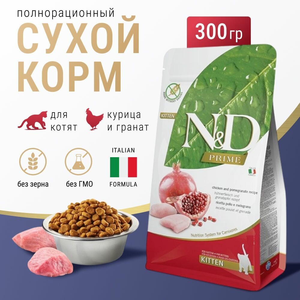 Farmina N&D Prime Сухой корм для котят, с курицей и гранатом, 300 гр.: сравнение цен, характеристики, фото, актуальное наличие и цены.