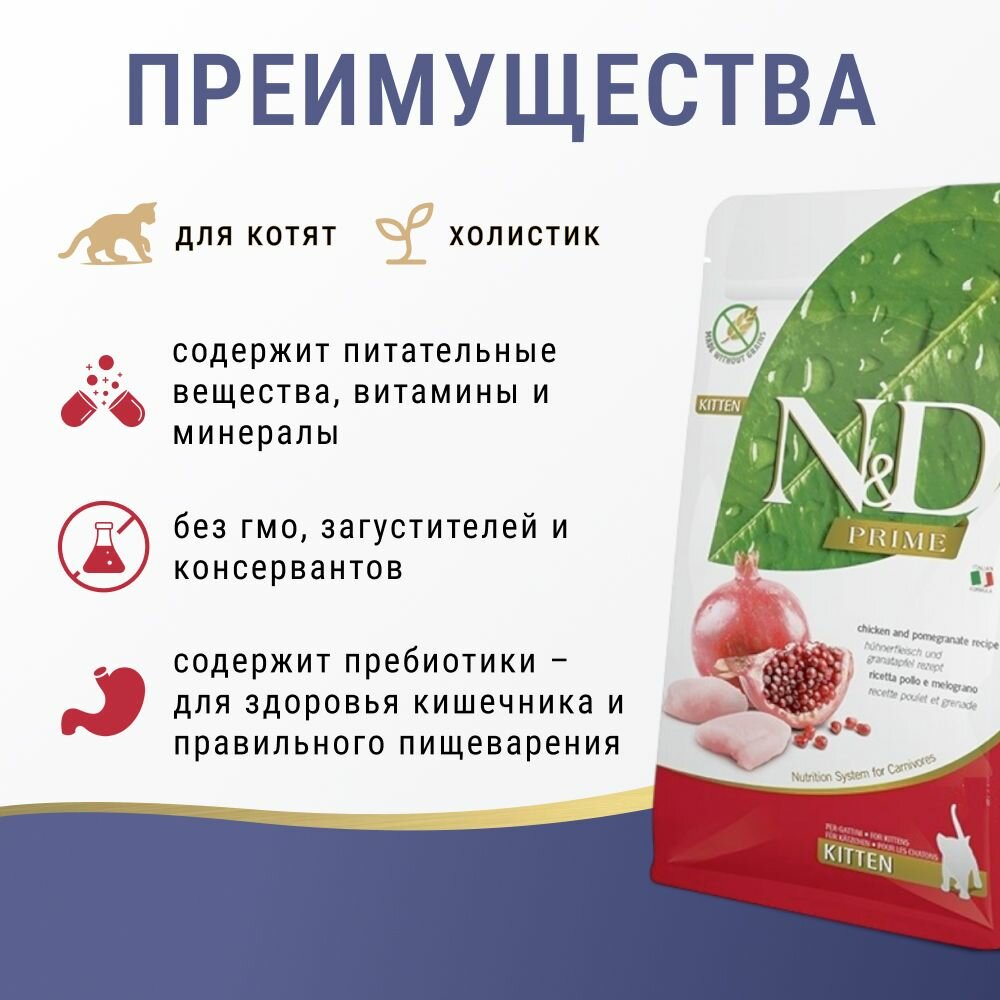 N&D PRIME сухой корм для котят, с курицей и гранатом. Полнорационный беззерновой корм для котят, беременных и лактирующих кошек.
