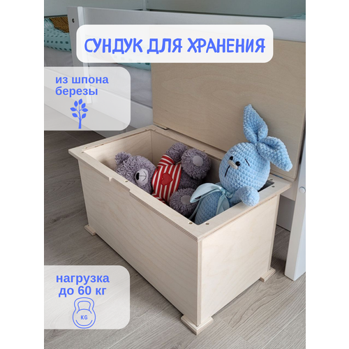 Сундук деревянный ящик для хранения вещей детский - это компактное и функциональное решение для хранения детских вещей. Изготовлен из высококачественной фанеры, этот сундук обеспечивает долговечность и надежность использования.