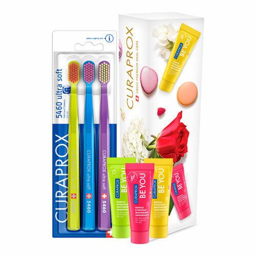 Комплект универсальных зубных щеток CURAPROX CS 5460 - мягкие и безопасные, специально разработаны для взрослых и подростков от 12 лет и предназначены для максимально бережного ухода. Щетка 5460 имеет мягкую щетину, состоящую из 5460 щетинок CUREN из сверхтонкого полиэстрового волокна, которая не повредит десны и позаботится о зубах, даже чувствительных. Запатентованная плотная щетина не впитывает влагу, снижая риск появления в ней патогенной бактериальной среды. В состав набора входят 3 зубные щетки, а также 3 пробника отбеливающих паст Be You. Набор идеально подходит для того, чтобы познакомиться с премиальными линейками швейцарского бренда. Набор зубных щеток станет отличным подарком для всей семьи. Профессиональная зубная щетка - это отличный выбор для заботы о зубах.