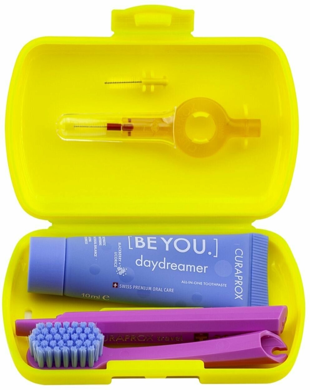 Купить Curaproxs Be You набор дорожный в желтом боксе: щетка зубная складная, паста, набор межзубных ершиков с держателем с доставкой по всей России.