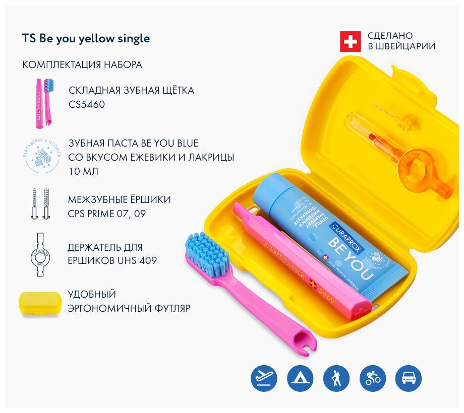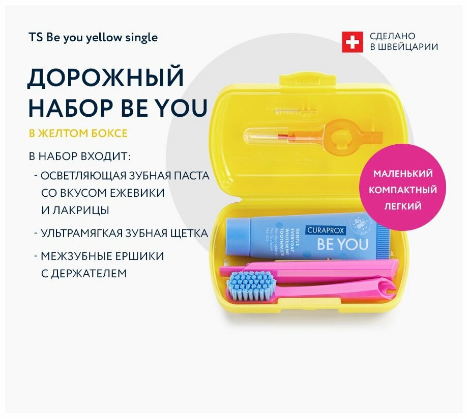 Curaproxs Be You набор дорожный в желтом боксе: щетка зубная складная, паста, набор межзубных ершиков с держателем: сравнение цен, характеристики, фото, актуальное наличие и цены.