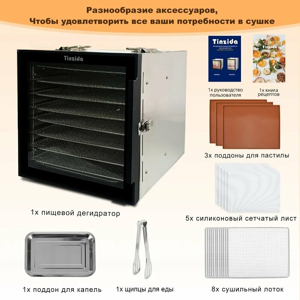 Купить Cушилка для овощей и фруктов TINZIDA Дегидратор TZD08DGL 8 лотков 600 Вт с доставкой по всей России. Cушилка для овощей и фруктов TINZIDA Дегидратор TZD08DGL 8 лотков 600 Вт: сравнение цен, характеристики, фото, актуальное наличие и цены.
