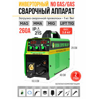 | Комплектация | Cварочный аппарат - 1 шт. Руководство по эксплуатации -1 шт. Кабель с горелкой - 3 м. - 1 шт. Держатель электродов - 2,9 м. - 1 шт. Обратный силовой кабель с зажимом (струбциной) - 1,8 м. -1 шт. Сварочная проволока - 1 шт. Сварочная маска - 1 шт. Газовый шланг - 3 м. - 1 шт. Упаковка - 1 шт. |