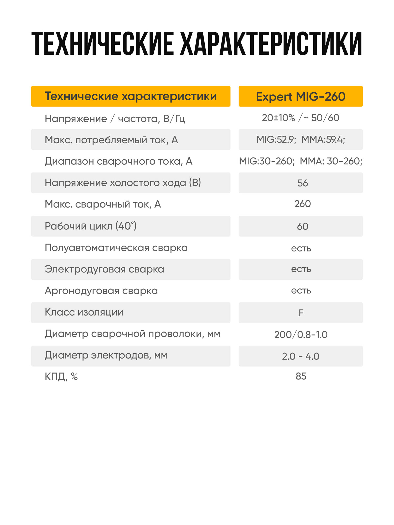 | Сварочный ток (MIG/MAG), max | 220 А |