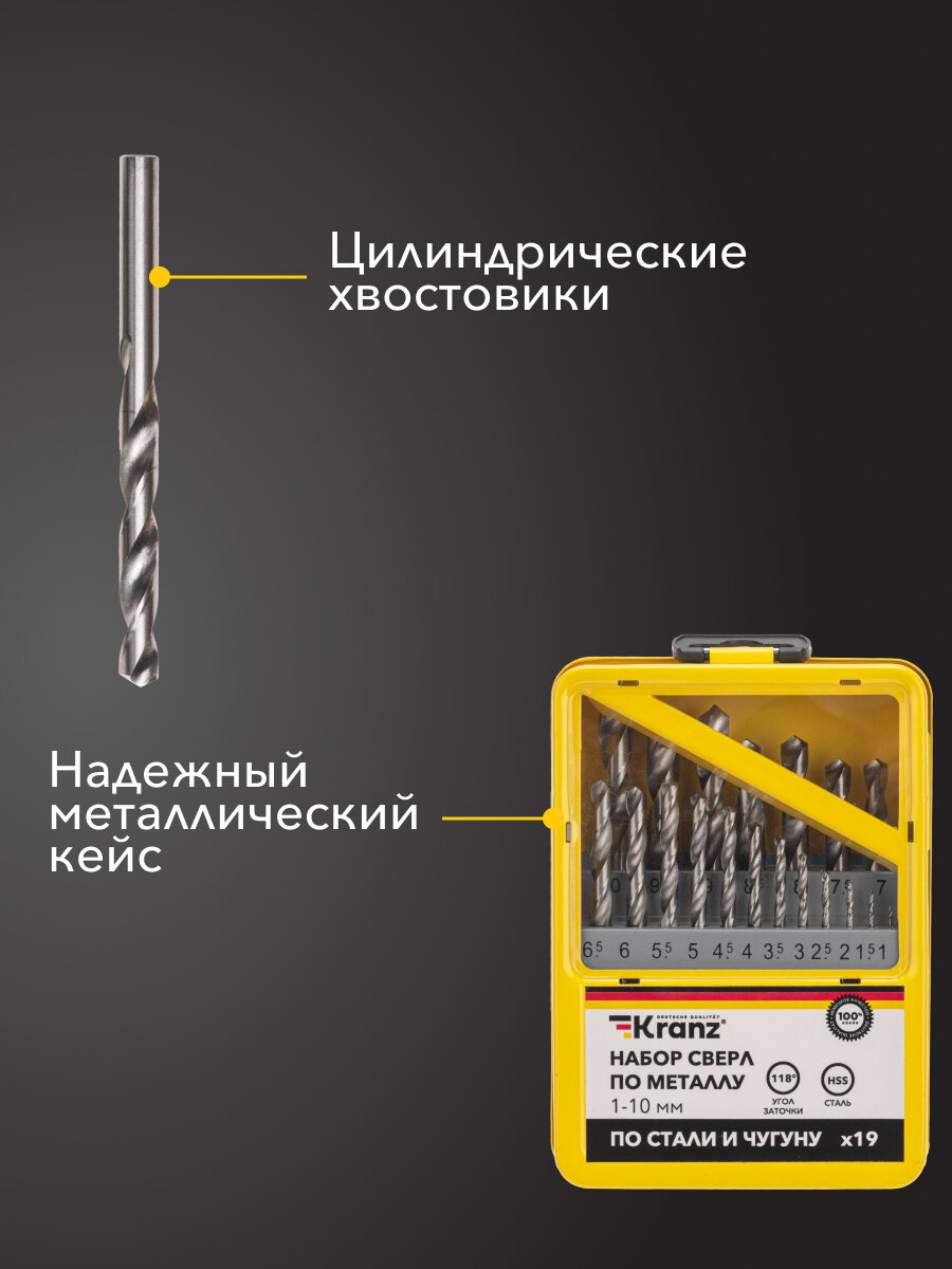 Купить Cверла по металлу 1-10мм HSS 19 шт, 118 градус заточки, KRANZ с доставкой по всей России. Cверла по металлу 1-10мм HSS 19 шт, 118 градус заточки, KRANZ: сравнение цен, характеристики, фото, актуальное наличие и цены.
