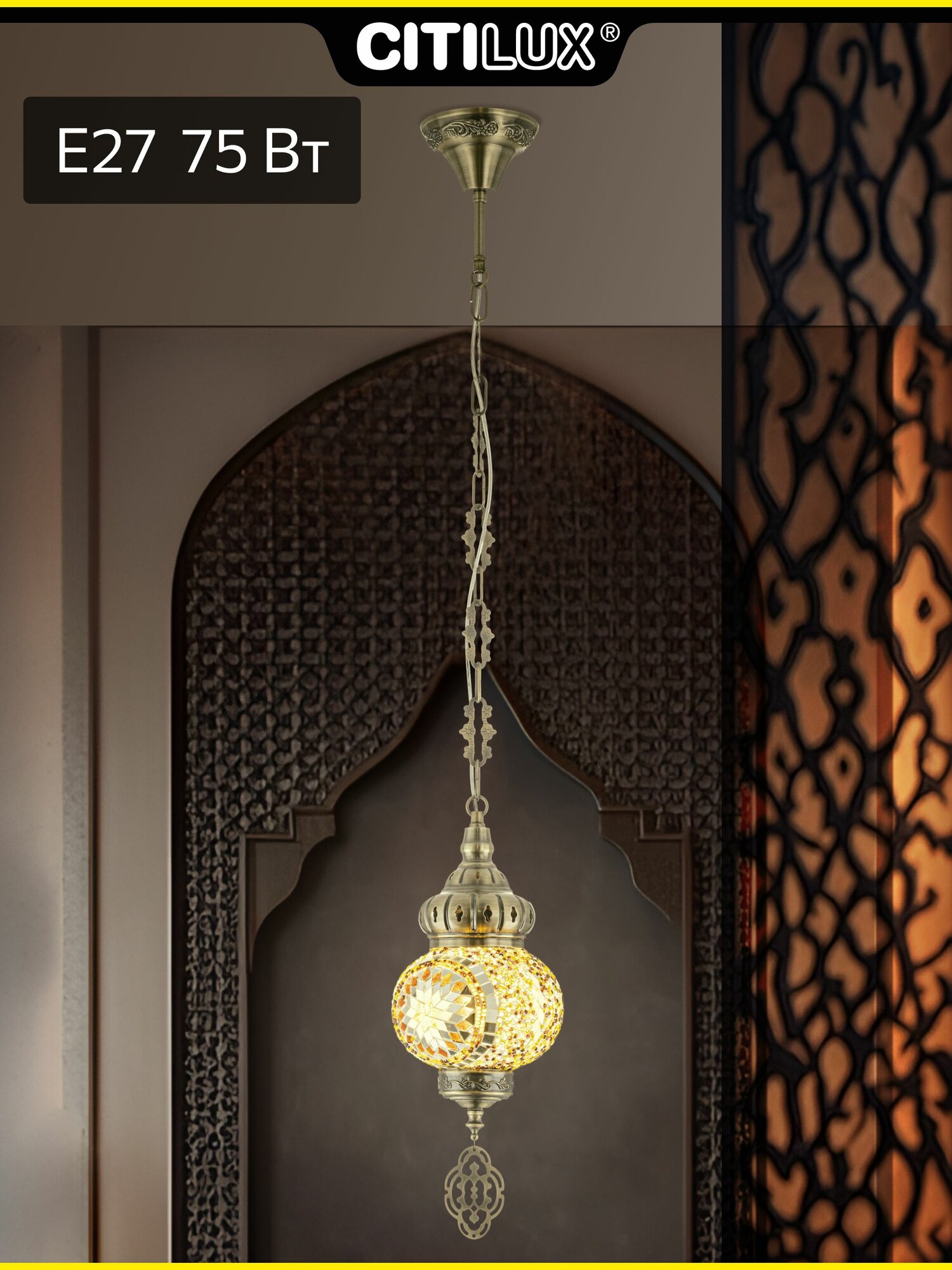 Cветильник потолочный подвесной Citilux Каир CL419115, 1 лампа Е27, бронза, шаровый плафон: сравнение цен, характеристики, фото, актуальное наличие и цены.