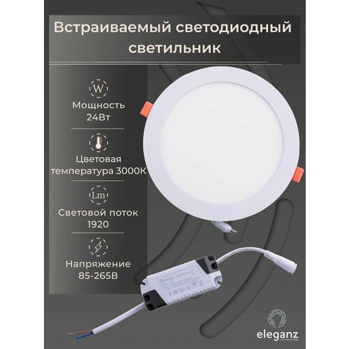 Купить Cветильник потолочный встраиваемый «Eleganz» 24Вт Круг 3000К Светодиодная алюминиевая панель от сети 220 В, белый корпус с доставкой по всей России. Cветильник потолочный встраиваемый «Eleganz» 24Вт Круг 3000К Светодиодная алюминиевая панель от сети 220 В, белый корпус: сравнение цен, характеристики, фото, актуальное наличие и цены.