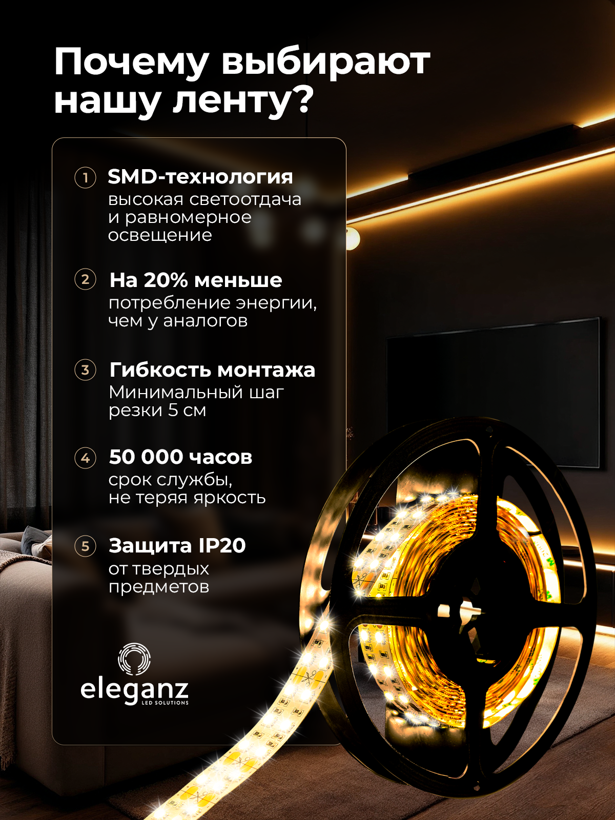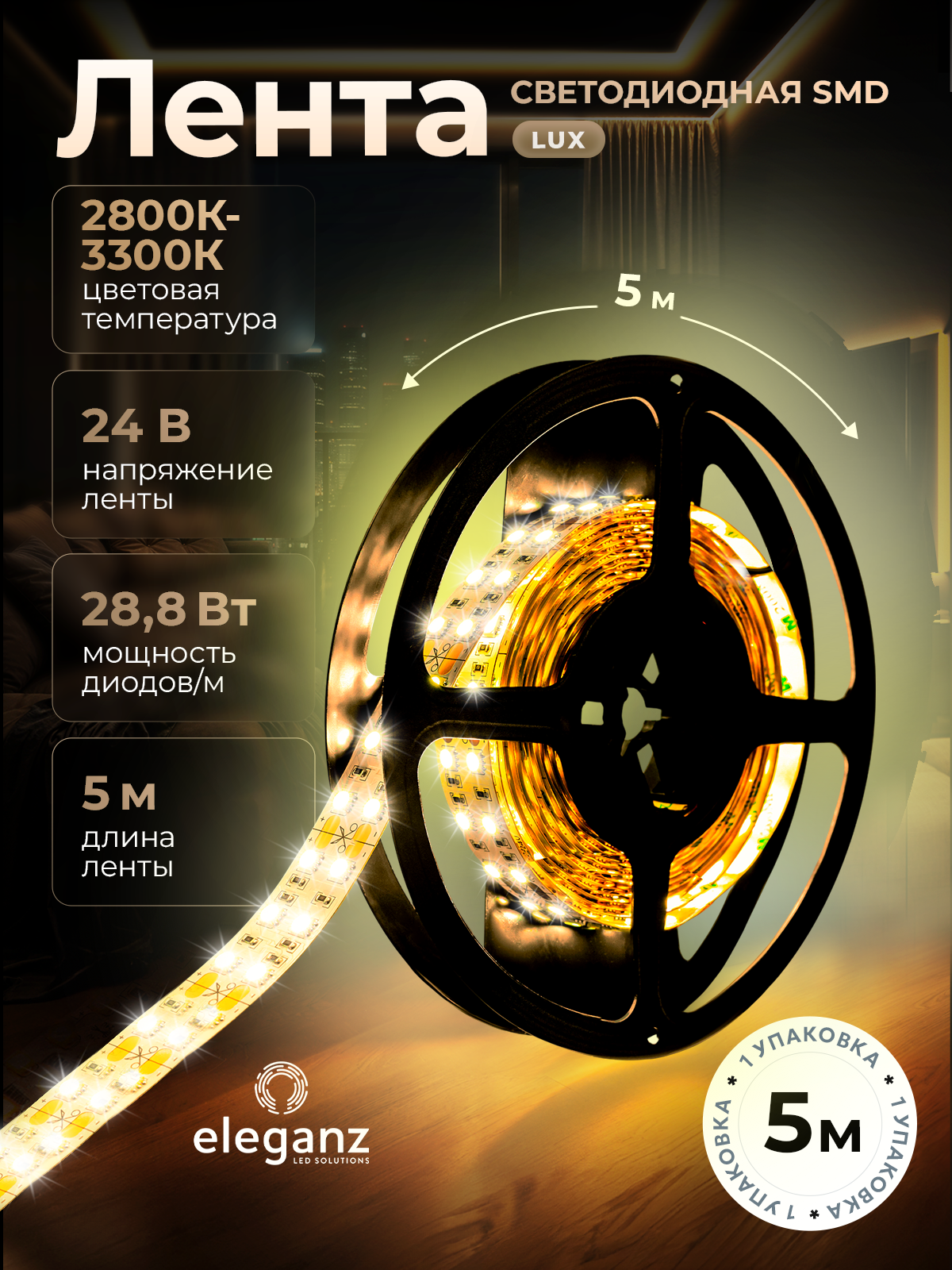 | Дополнительная информация | Высококачественная светодиодная лента от официального онлайн-магазина бренда светодиодной продукции "ELEGANZ" |