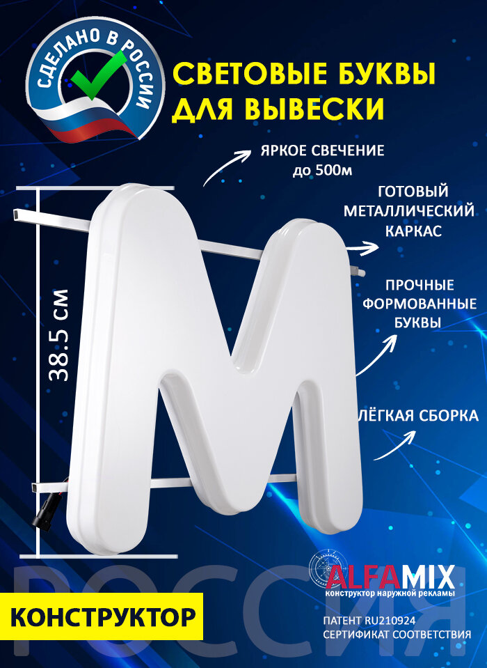 Cветодиодная вывеска / Объемная буква для световой рекламы М: сравнение цен, характеристики, фото, актуальное наличие и цены.