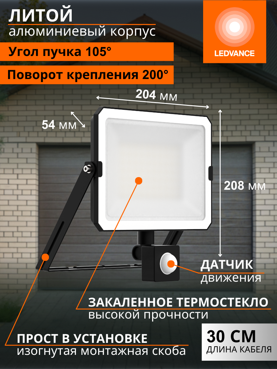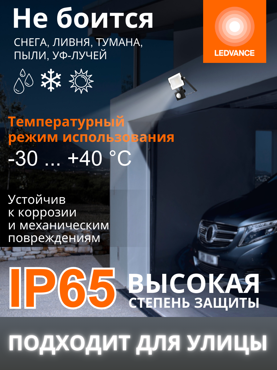 Прожектор IP65 светодиодный с датчиком движения OSRAM FLOODLIGHT S — идеальный выбор для тех, кто ищет долговечное и надежное решение для освещения наружных территорий.