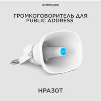 CVGaudio HPA30T – профессиональный Public Address рупорный громкоговоритель. Используется для трансляции речевых сообщений в служебных, торговых и общественных помещениях и на открытых территориях, где требуется хорошая читаемость и разборчивость транслируемой речи. Рупорные громкоговорители CVGaudio можно устанавливать как внутри помещений, так и на открытом воздухе. Герметичный корпус акустической системы выполненный из ABS пластика стойкого к выгоранию на солнечном свете, воздействию влаги и пыли