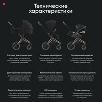 | Особенности шасси | корзина для покупок, перекидная ручка, перестановка блока лицом/спиной, регулировка высоты ручки, съемные колеса |