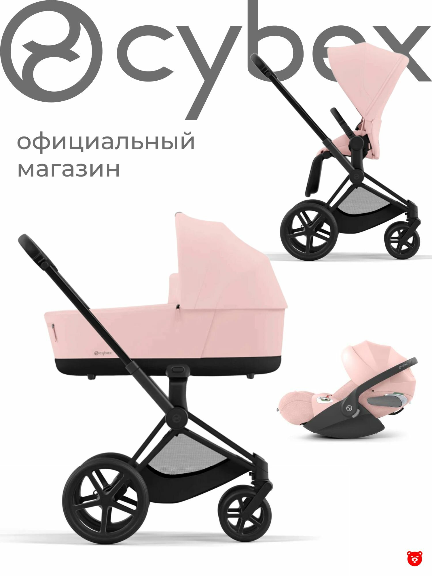 Купить Cybex Priam IV Коляска 3 в 1, Matt Black/Peach Pink/автолюлька с разложением Cloud T Peach Pink PLUS с доставкой по всей России.