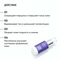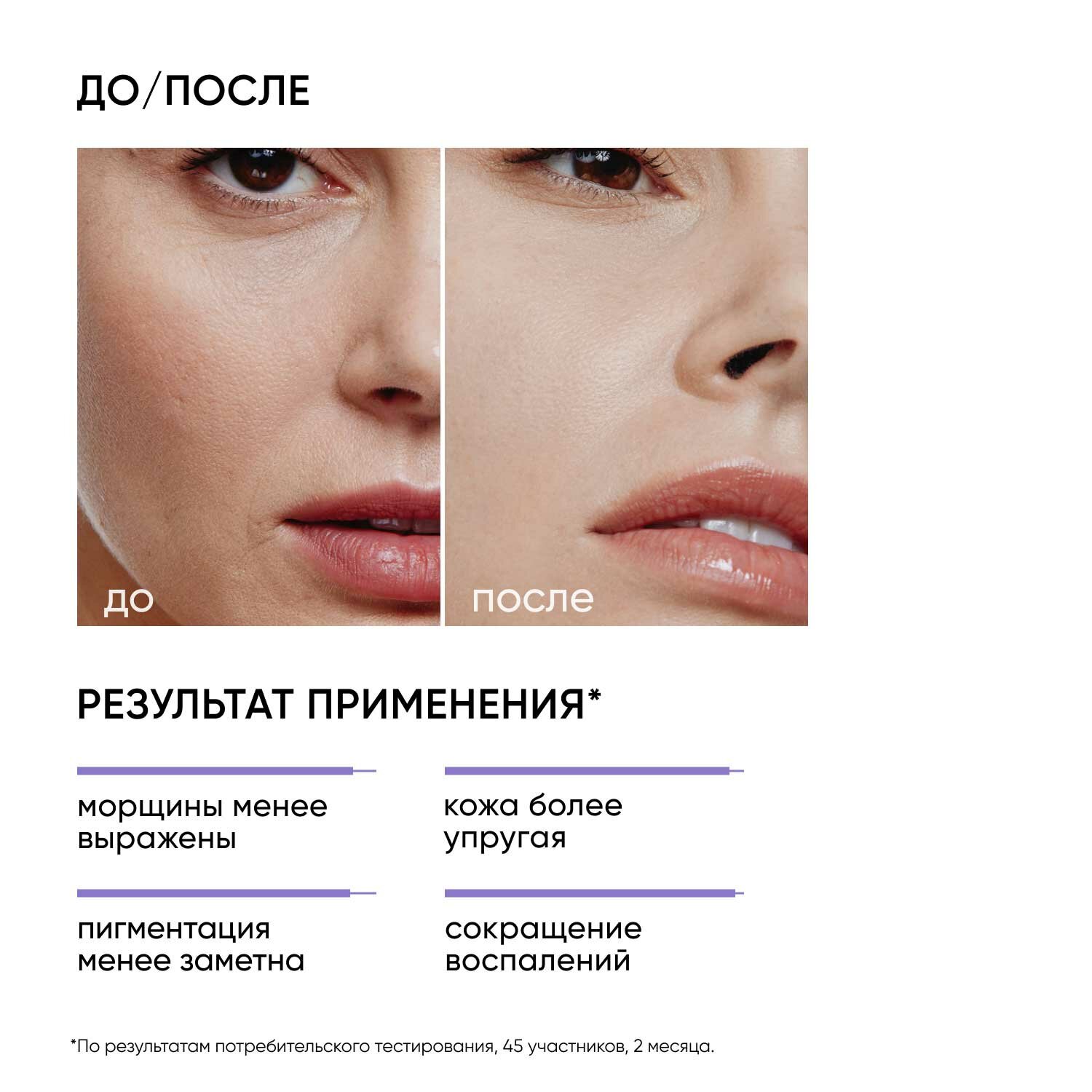 | Активный ингредиент | аллантоин, антиоксиданты, витамин A (ретинол), витамин B3 (ниацинамид), витамин C (аскорбиновая кислота), витамин E, гиалуроновая кислота, коллаген, пептиды, салициловая кислота, церамиды |