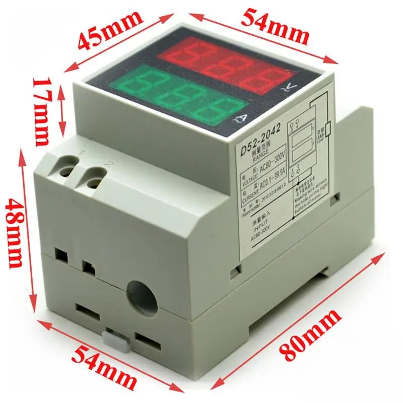 D52-2042 Цифровой вольтметр Амперметр Din-рейка Измеритель напряжения и тока с двойным дисплеем AC80-300V AC0-100A Тестер вольтметра: сравнение цен, характеристики, фото, актуальное наличие и цены.