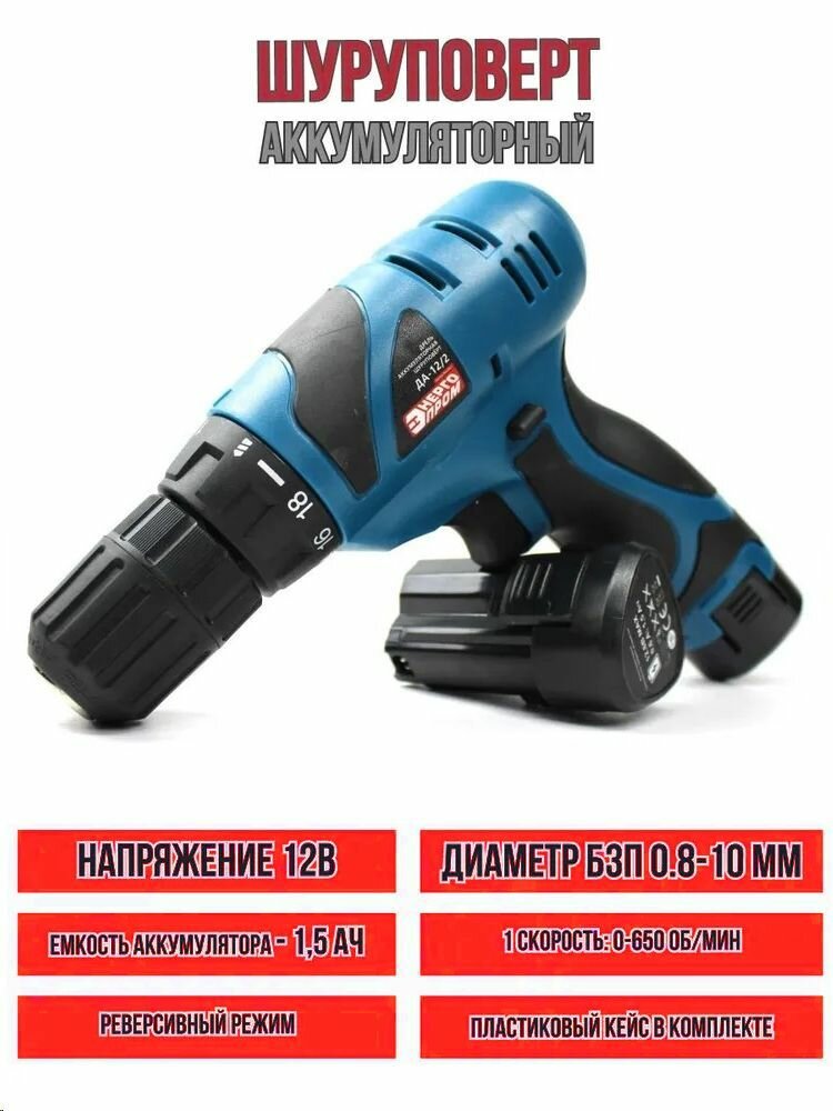 Купить Шуруповерт аккумуляторный «энергопром Home Master» 2 аккумулятора, кейс, 12В / 1,5ач, ДА-12/2/ с доставкой по всей России.