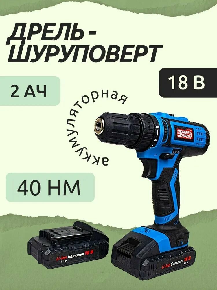 ДА-18/2 Li(10877)/ Дрель-шуруповерт аккумуляторная 18v Энергопром, 18 В, 40 Нм, 2 Ач, 2 АКБ: сравнение цен, характеристики, фото, актуальное наличие и цены.