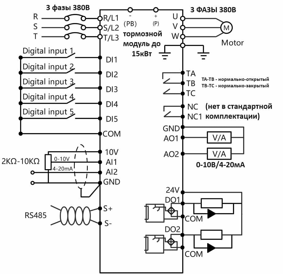 - встроенный тормозной модуль в моделях до 15кВт включительно