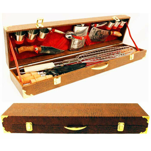 Купить Дагестан Набор для шашлыка «Профессионал» в коричневом кейсе (20 предметов) с доставкой по всей России.