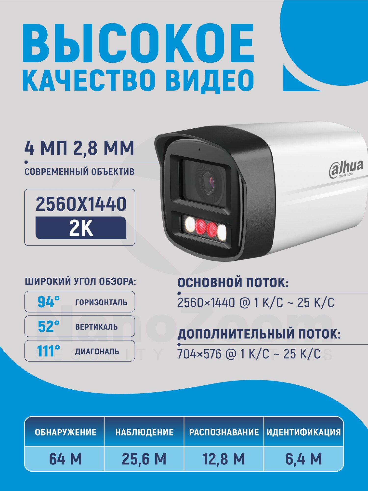 Камера видеонаблюдения IP уличная купольная Dahua DH-IPC-HFW1439TL1P-A-IL-0280B - предназначена для осуществления круглосуточного видеонаблюдения и передачи видеопотока на устройства отображения и хранения видеоинформации. Модель оснащена мощной адаптивной комбинированной IR/LED-подсветкой 30m, высоким разрешением 4MP и поддержкой алгоритмов глубокого обучения для работы детекторов защиты периметра и обнаружения движения. Поддержка технологии Full-Color обеспечивает возможность формирования цветного изображения в условиях недостаточной освещённости. Применяется в системах видеонаблюдения для обеспечения общественной безопасности, на объектах промышленности, коммерческого строительства, объектов торговли, здравоохранения и др.