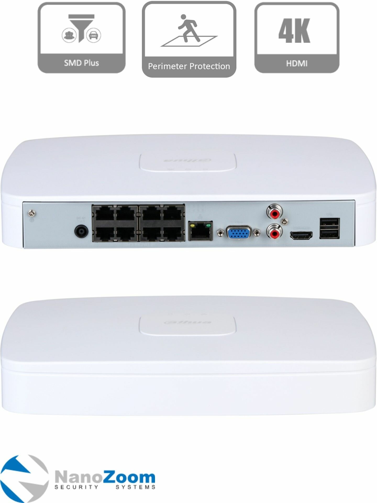 Dahua DH-NVR2108-8P-4KS3 — 8 канальный видеорегистратор IP для камер видеонаблюдения, NVR регистратор сетевой, 4K, 1 HDD, 8 PoE, H.265+