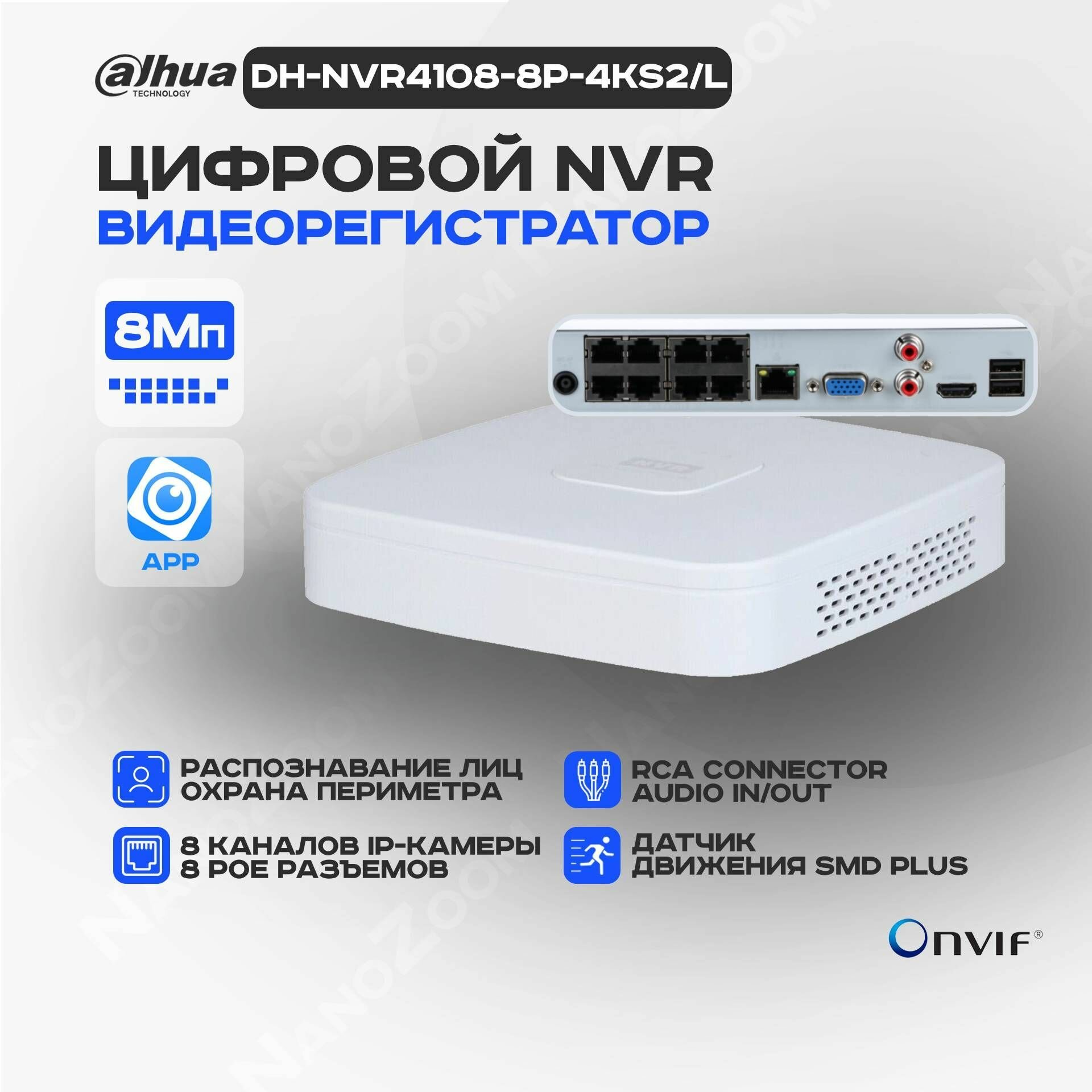 Dahua DH-NVR4108-8P-4KS2/L — 8 канальный видеорегистратор IP для камер видеонаблюдения, NVR регистратор сетевой с PoE: сравнение цен, характеристики, фото, актуальное наличие и цены.