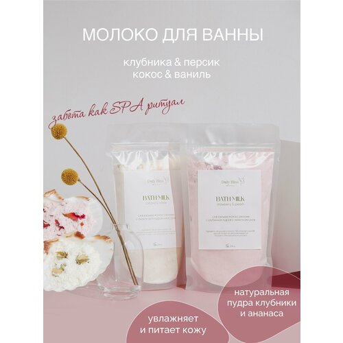 Смягчающее молоко для ванны с кокосовым молоком, клубничной пудрой, ананасовой пудрой, морской солью, маслом клубники, маслом персика и лепестками красной розы и бутонами белой розы, создано для расслабляющих и красивых домашних спа-процедур. Каждое принятие ванны превратится в красивый и приятный ритуал, а лепестки розы на поверхности воды создадут романтичную атмосферу.