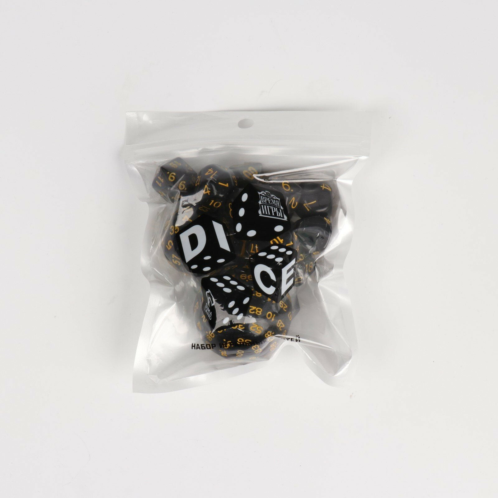 Набор кубиков для D&D "Время игры" - это незаменимый аксессуар для любителей настольных игр. Этот набор включает в себя 15 кубиков черного цвета, которые помогут вам погрузиться в захватывающий мир Dungeons and Dragons.