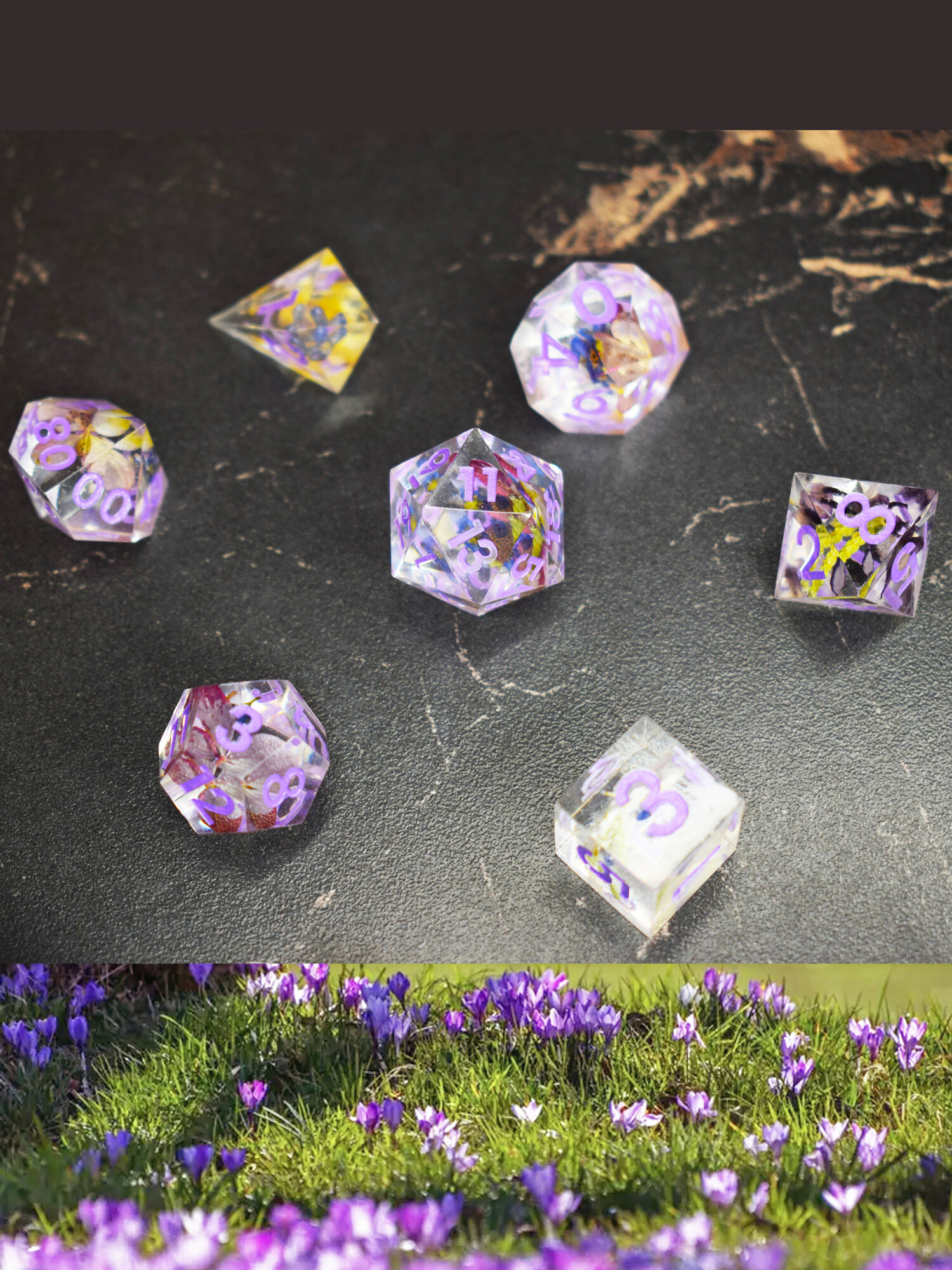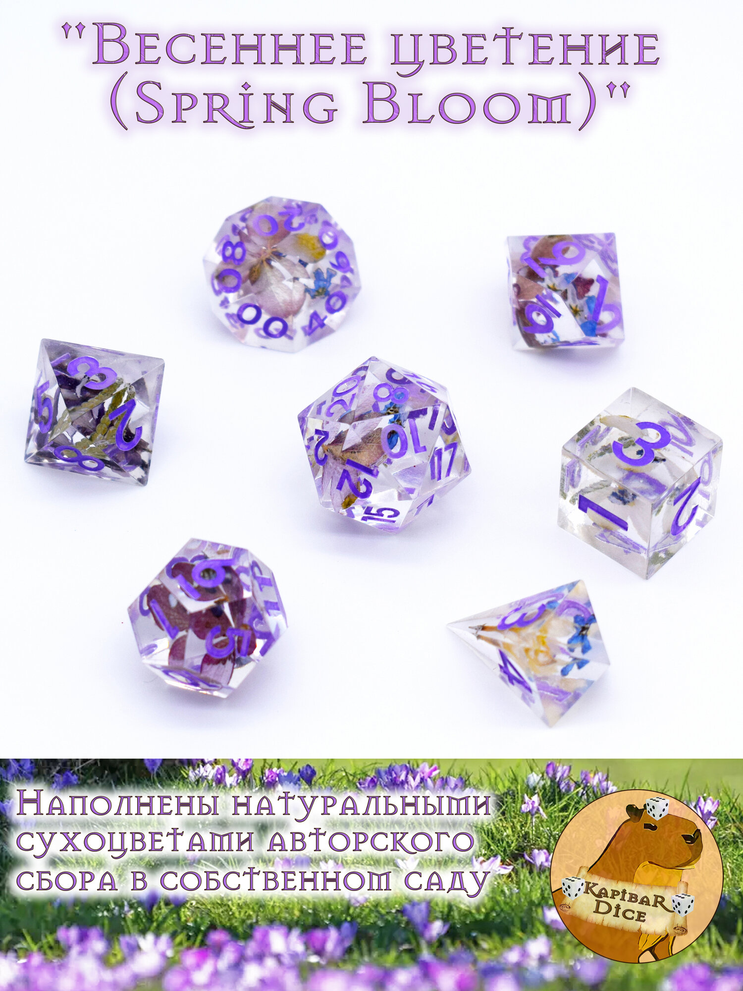 Купить Дайсы Кости Кубики ручной работы для DnD, ДнД, Dungeons and Dragons, Pathfinder RPG (набор 7шт) Весенние с доставкой по всей России.