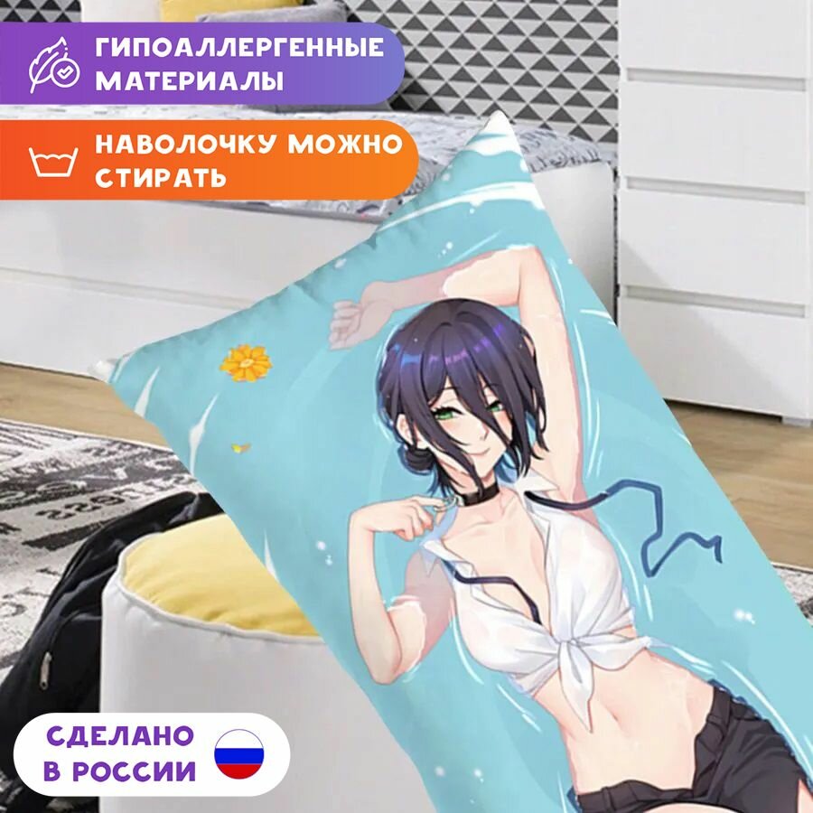 Комплект с Резе подарят прекрасную возможность украсить свой дом атрибутикой с любимым персонажем. Воплотите в реальность то, что вам так нравится. Каждая наволочка для дакимакуры выполнена из качественного плотного габардина и имеет потайную молнию в нижнем крае, что обеспечивает удобство при эксплуатации. Яркая и насыщенная двусторонняя печать на наволочках является полностью гипоаллергенной. Износостойкий принт выдерживает более 50 стирок, сохраняя идеальный внешний вид. Остановив свой выбор на комплекте из наволочки и подушки-дакимакуры, то ощутите удобство и невероятную мягкость. Каждая дакимакура плотно набита холлофайбером – это мягкий гипоаллергенный наполнитель, который подарит ощущение комфорта и уюта, а также быстро примет первоначальную форму после сжатия. Размер наволочки 90*30 см. Материал наволочки: габардин (100% полиэстер). При изготовлении допустима погрешность размера любого изделия на 2-5 см.