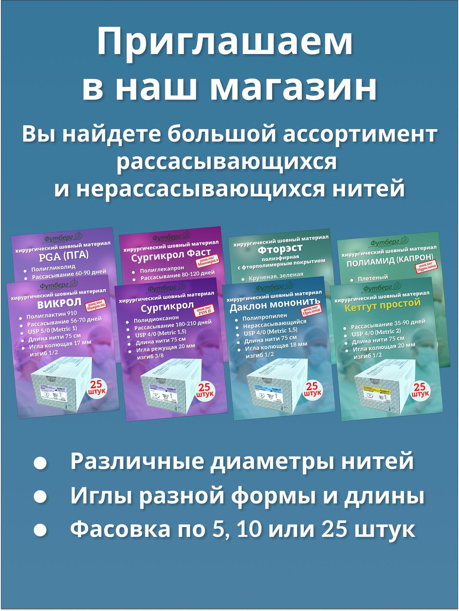 Даклон мононить USP 5/0 (M1), длина 75см, игла колющая 18мм, изгиб 1/2, (5 штук) нить полипропилен Шовный хирургический материал Футберг: сравнение цен, характеристики, фото, актуальное наличие и цены.