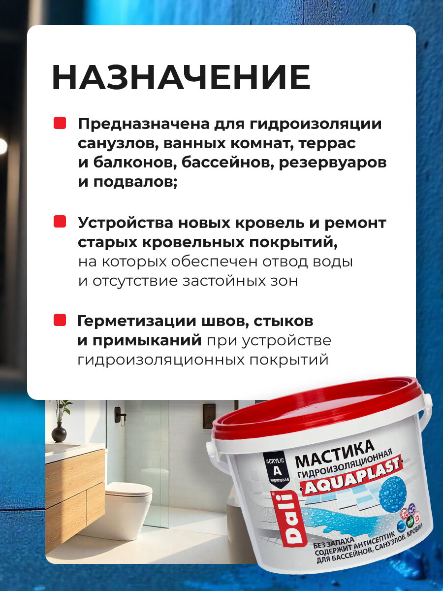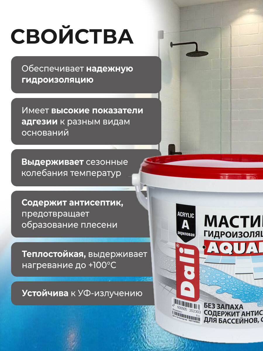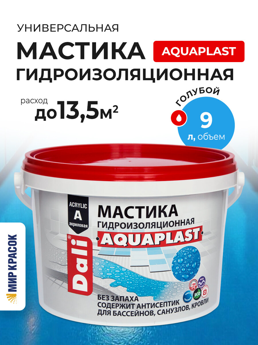 Dali мастика Aquaplast гидроизоляционная универсальная акриловая, голубой (9 л): сравнение цен, характеристики, фото, актуальное наличие и цены.