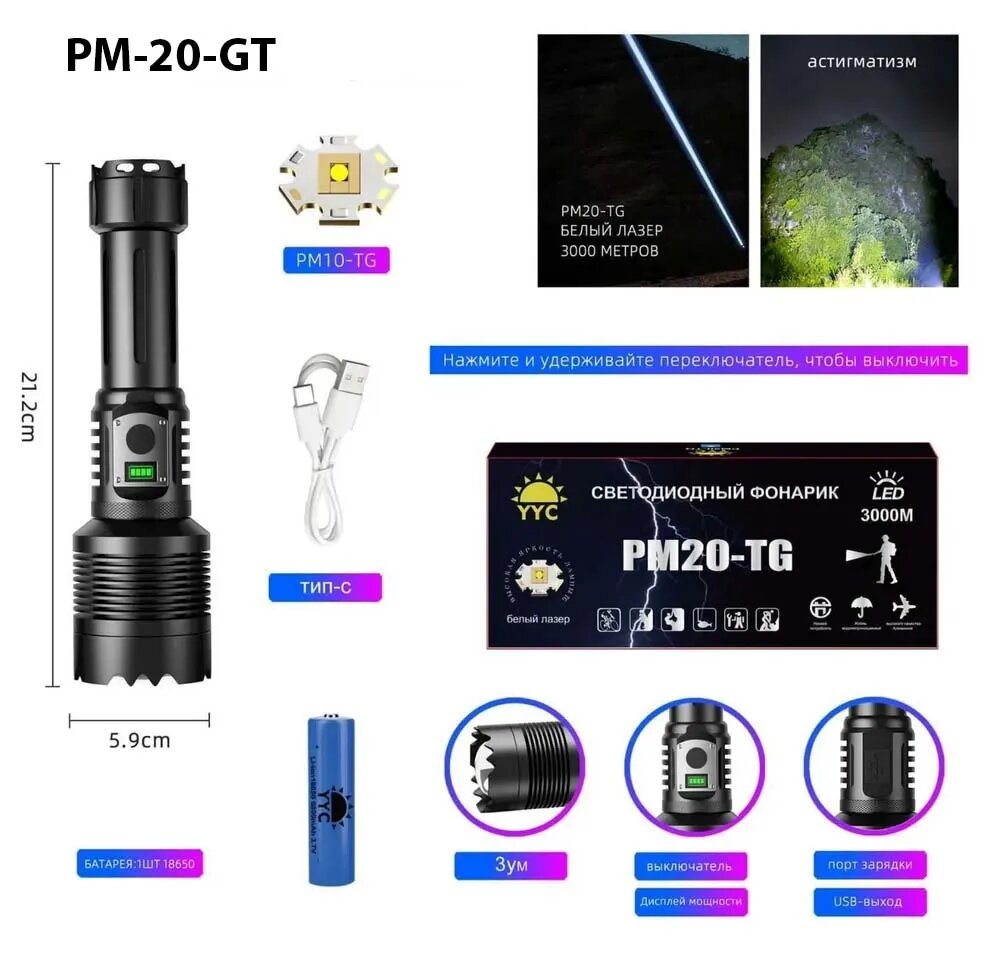Купить Дальнобойный светодиодный фонарь YYC-6024-PM20-TG повышенной яркости на диоде (белый лазер) с доставкой по всей России. Дальнобойный светодиодный фонарь YYC-6024-PM20-TG повышенной яркости на диоде (белый лазер): сравнение цен, характеристики, фото, актуальное наличие и цены.