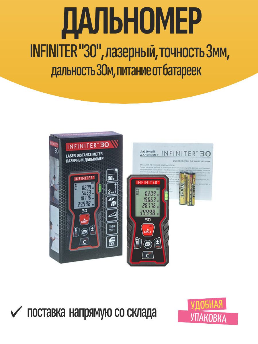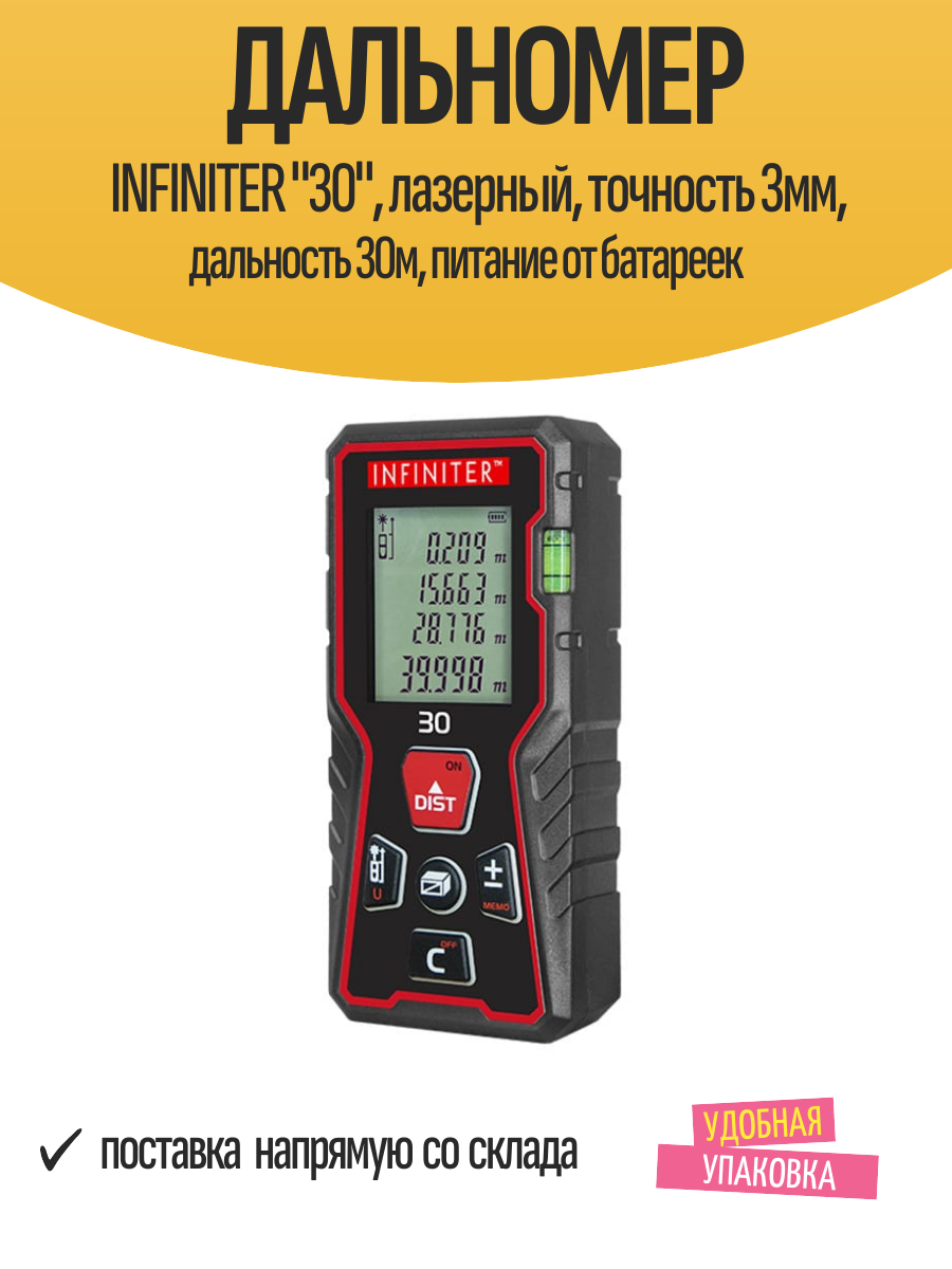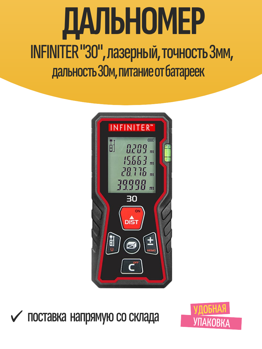 Дальномер INFINITER «30», лазерный, точность 3мм, дальность 30м, питание от батареек: сравнение цен, характеристики, фото, актуальное наличие и цены.