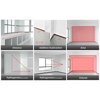 автоматическое отключение, определение мин. и макс. значений, ударопрочный корпус, функция Пифагора, функция непрерывного измерения, функция расчета объема, функция расчета площади, функция расчета углов, функция сложения/вычитания