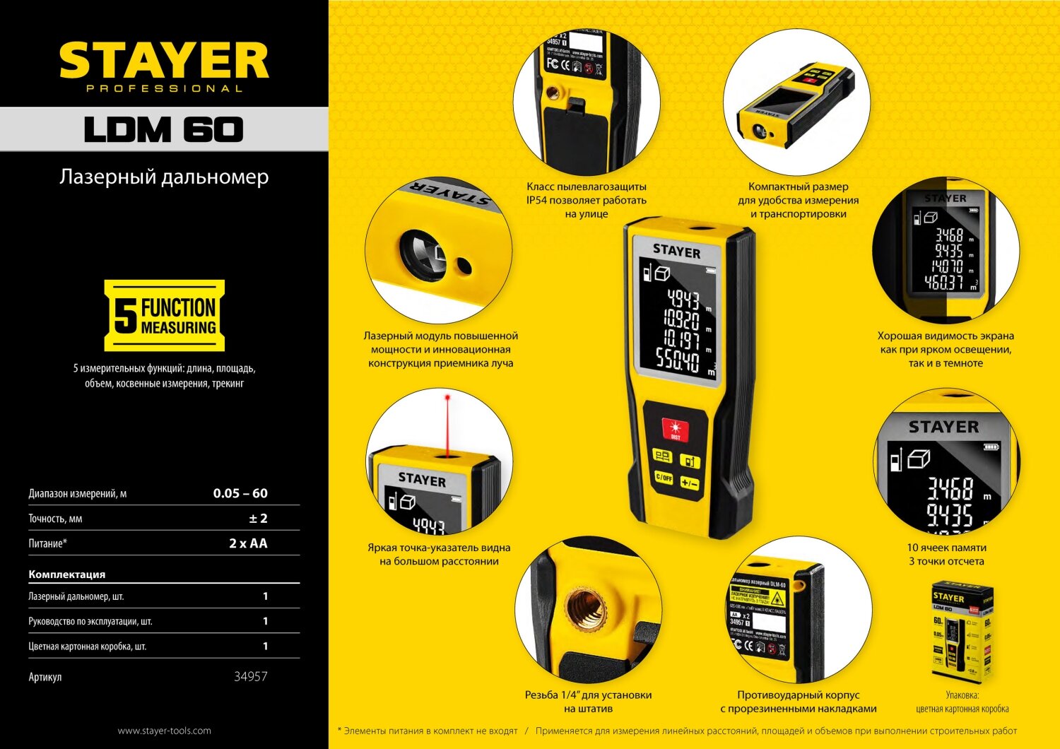 Купить STAYER 60 м, лазерный дальномер, Professional (34957) с доставкой по всей России. STAYER 60 м, лазерный дальномер, Professional (34957): сравнение цен, характеристики, фото, актуальное наличие и цены.
