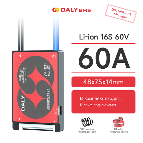 DALY BMS 60A Li-ion 16S 60B с датчиком температуры Поддержка непрерывного тока 60A BMS для литиевых батарей.: сравнение цен, характеристики, фото, актуальное наличие и цены.
