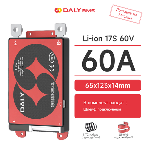 DALY BMS 60A Li-ion 17S 60B с датчиком температуры Поддержка непрерывного тока 60A BMS для литиевых батарей.: сравнение цен, характеристики, фото, актуальное наличие и цены.