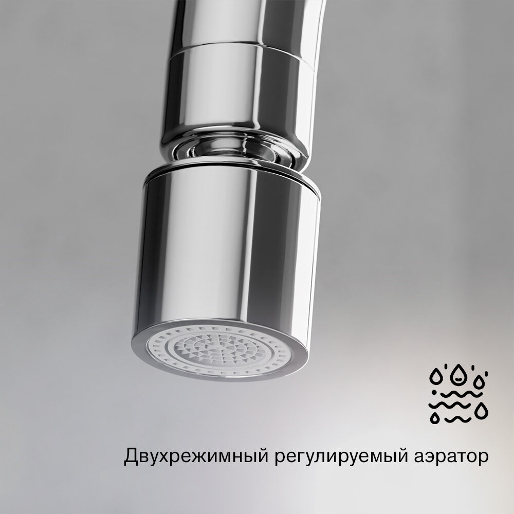 | Особенности | аэратор, встроенный фильтр, поворотный излив |