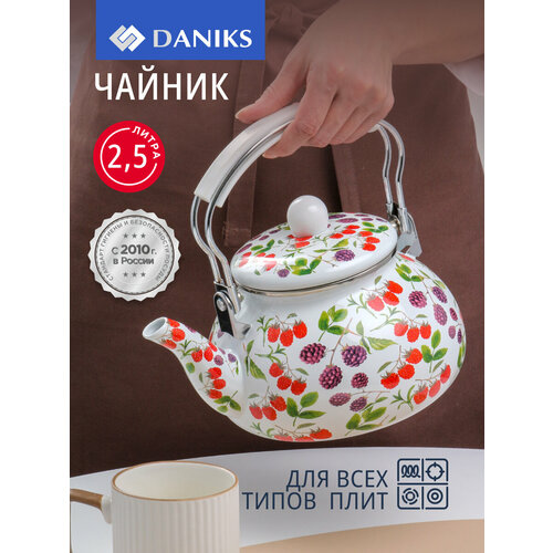 Чайник Daniks 2,5 л из стали с эмалевым покрытием и рисунком «Ягоды» — стильный выбор для дома и дачи, подходит для индукционных плит. Приятный дизайн, долговечность, быстрый нагрев воды.